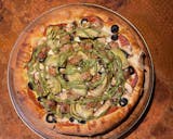 All Pizza comes with real mozzarella cheese. Pepperoni, mushrooms, spinach, ricotta cheese & artichoke.